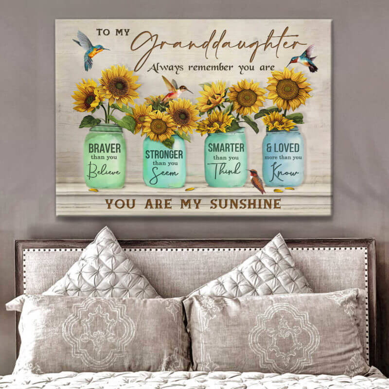 Canvas Wall Art Home Decor Best Gift for your Granddaughter with Sunflowers and Hummingbirds CA224