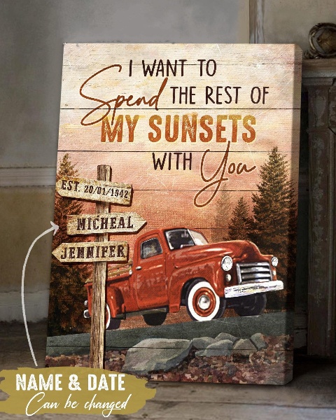 Personalized Canvas Wall Art Home Decor Anniversary Gift- The Rest Of Sunsets Red Car CA260