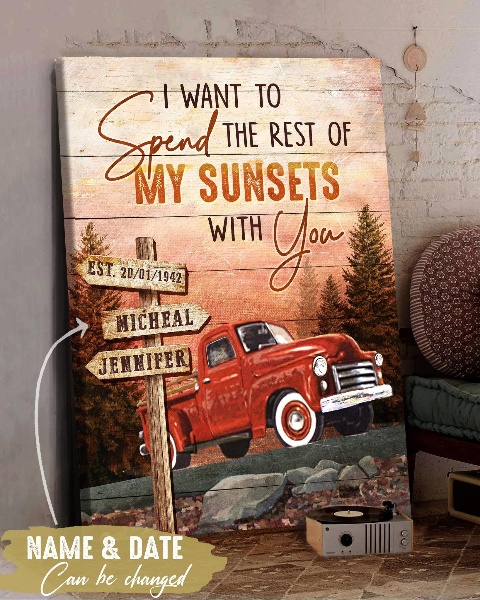 Personalized Canvas Wall Art Home Decor Anniversary Gift- The Rest Of Sunsets Red Car CA260