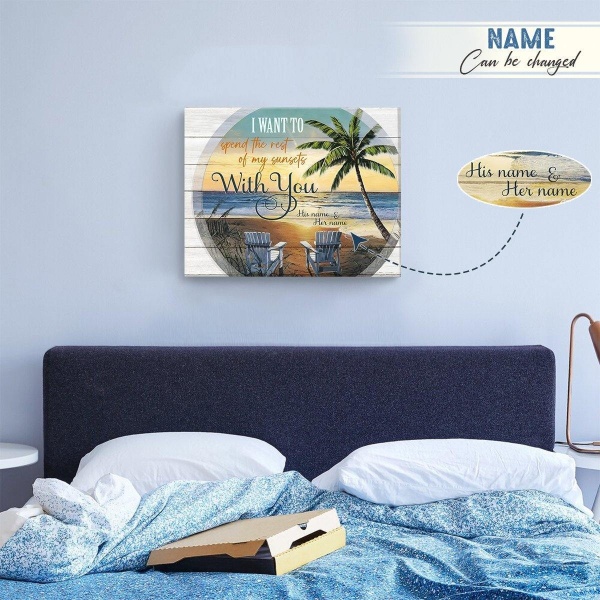 Personalized Canvas Wall Art Home Decor Wedding Anniversary Gift – Coastal Spent Rest Of My Sunsets With You CA256