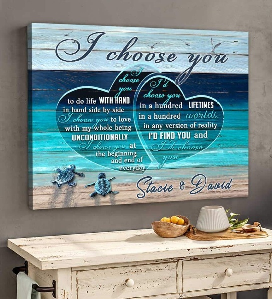 Personalized Canvas Wall Art Home Decor Anniversary Wedding Gift Sea Turtle I Choose You CA233