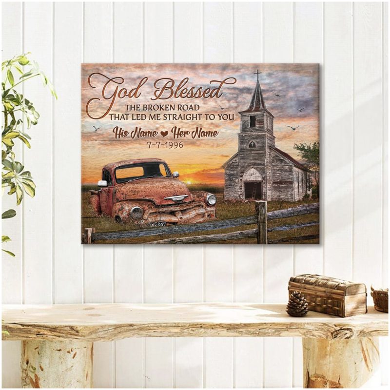 Personalized Canvas Wall Art Home Decor Wedding Anniversary Gifts God Blessed The Broken Road CA213