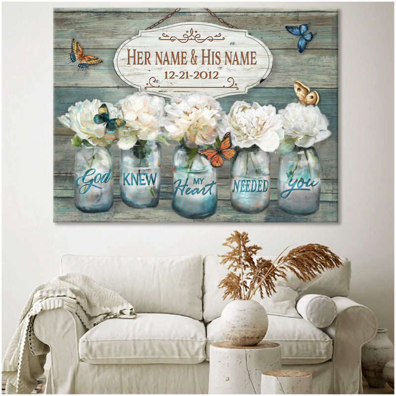 Personalized Canvas Wall Art Home Decor Wedding Anniversary Gifts God Knew My Heart Needed You CA217