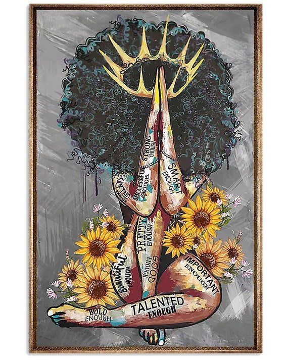 Canvas Wall Art Home Decor Black Queen With Sunflowers Talented Enough Important Enough Smart Enough CA304